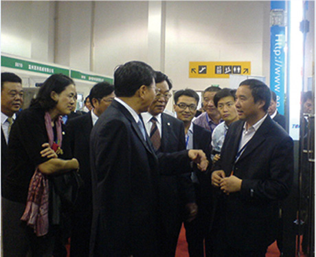 國家商務部副部長姜增偉來到湯姆公司展臺和湯姆公司副總經理湯建定進行了親切的交談